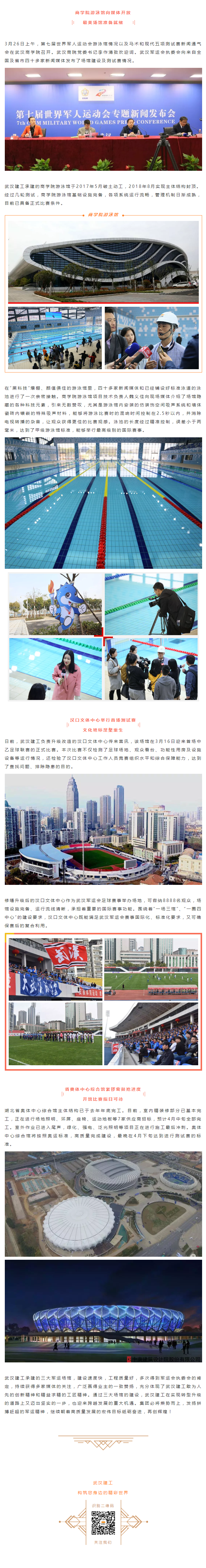 商學院游泳館再次吸引全國媒體目光 武漢建工承建的三大軍運會主場館即將華麗亮相